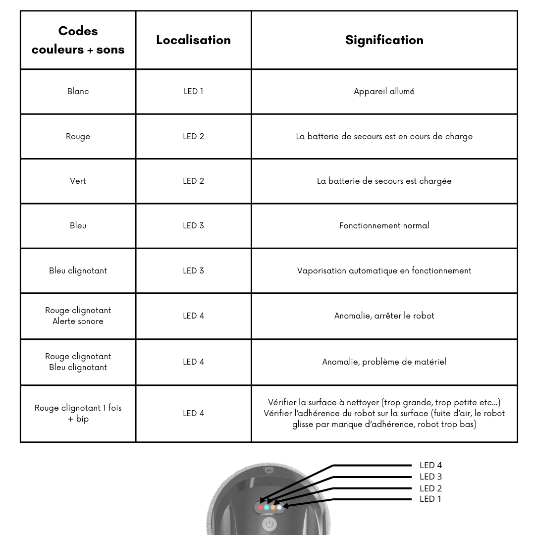 Lors du démarrage, le robot indique une alerte sonore ou visuelle